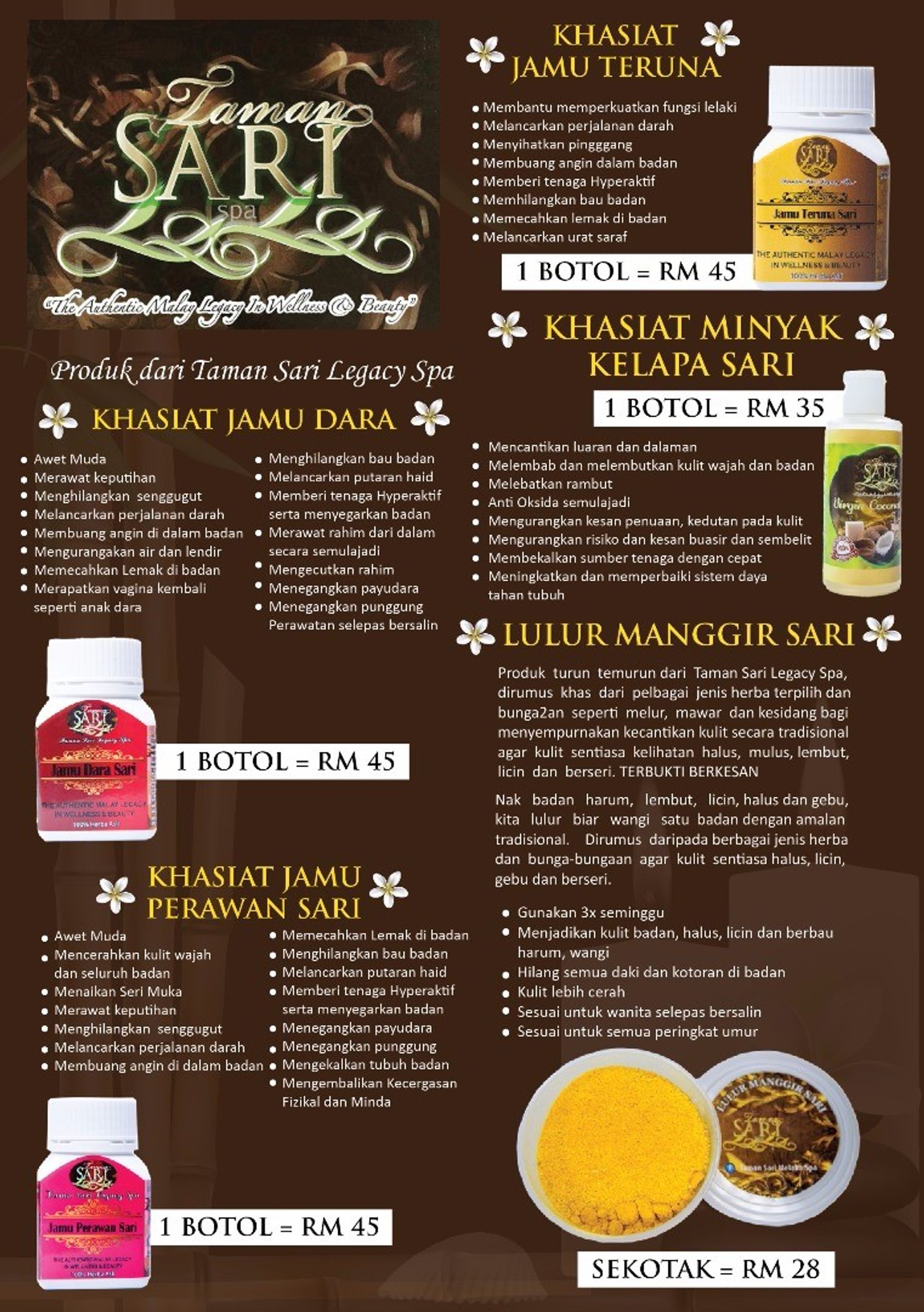 Produk Taman Sari Legacy Spa berdaftar 2016 - sekarang